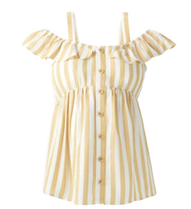 Isabel Umstandsmode gelb weiß gestreift gesmoktes Oberteil hinten Kunstknopfleiste neu mit Etikett S CHF 17,95Bisher: CHF 19,95