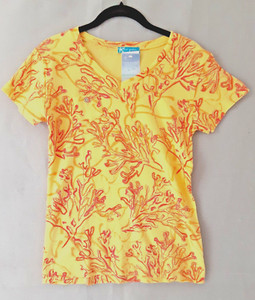 FRISCHE PRODUKTE Koi Teich Logo Fem V-Ausschnitt Baumwolle T-Shirt Top Gr. Small S Neu mit Etikett CHF 12,87