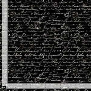 Floral Fabric | French Handwriting Script Black | Timeless Treasures YARD