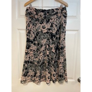 Y2K Damen L Blumendruck Maxirock Schlitz schwarz hellbraun fließend Lagenlook Norton McNaughton