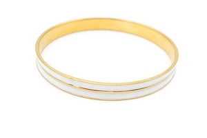 Vintage Armreif Armband goldfarben weiß Emaille 7,25"