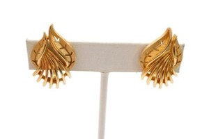 Vintage Krone Trifari Ohrclips goldfarben strukturiert Blatt U8