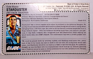 G.I. Joe Original Mail Away Karteikarte Starduster Jet Pack Trooper 1985 RedBack
