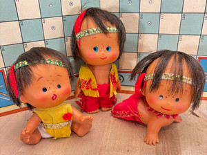 2 Vintage Baby Bohnen Streichholzschachtel Taschenpuppen, Clown und Mädchen im Blumenkleid, 3,5" CHF 24,25