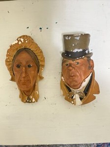 Menge 2 Vintage 1964 Bossons England Wandhänger Charles Dickens & Betsy Tritwood