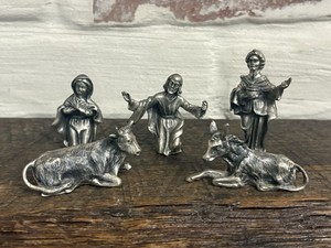 Hudson Fine Pewter 1980’s Mini Nativity Set (5) Mary, Joseph, Shepherd & Animals