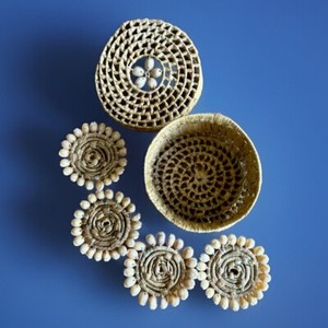 Vintage Boho Puka Muschel Gras Gewebt Untersetzer Set/4 + Deko Aufbewahrungsbox