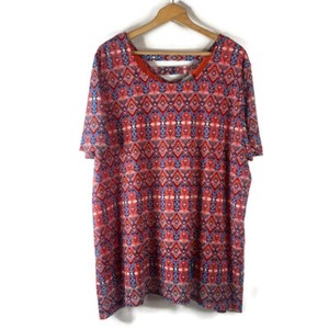 Catherines Damen Tunika Top Größe 2X Orange Netz-Overlay Boho Batik Rückenausschnitt