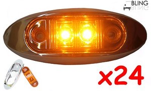 24 Amber w Bezel Clearance Side Marker Surface Mount 2" LED Light Oval Oblong