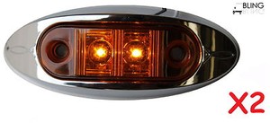10 Amber LED Oval 2" w Chrome Bezel Clearance Side Marker Light Surface Mount