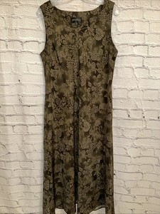 Studio I Women’s Sleeveless Maxi Dress Paisley Olive Green Grunge Size 14