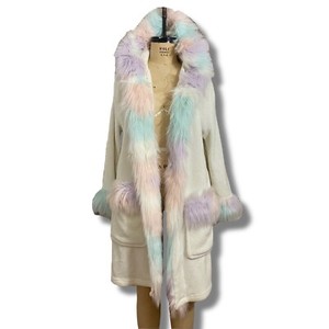 Pottery Barn teen multicolor faux fur collared teen robe MISSING BELT