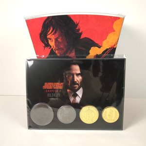 AMC Theater John Wick 4 - Plastic Popcorn Bucket & 4 Collectible Metal Coins NEW