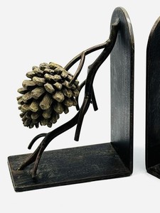Vintage Bronze Tannenzapfen Patina 2 Buchstützen schöner Guss Wald Hölzer Kunst