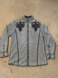 ROAR besticktes langärmeliges Herrenhemd mit mittlerer Krawatte zuknöpfen schwarz grau gotisch CHF 23,84
