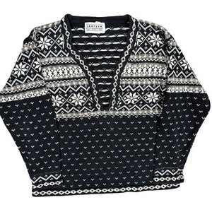 Vintage Jantzen Petite Fair Isle Knit Sweater V-Neck Black/White Small
