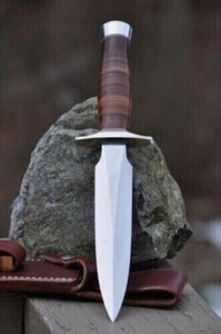 MASSGESCHNEIDERTE HANDARBEIT D2 WERKZEUG STAHL JAGDDOLCH BOWIE MESSER GESTAPELT LEDERGRIFF