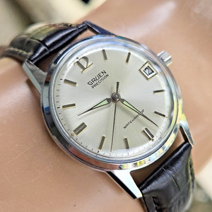 Vintage GRUEN Herren Automatik Uhr 580SS 17Jewels Swiss Sunburst Zifferblatt 60er Jahre