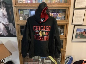 Neu mit Etikett Chicago Blackhawks NHL schwarz SPELL OUT Hoodie Sweatshirt Gr. XXL - cool