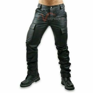 Schwarze Herren Leder Cargohose Herren Lederhose Lederjeans Männer