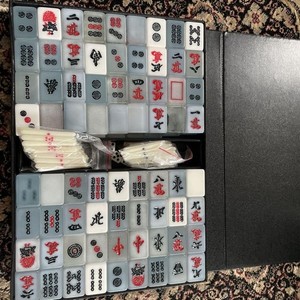 Washizu Transparent Mahjong Fliesen Set mit Aufbewahrungskoffer, inkl. Würfel & Chips 44