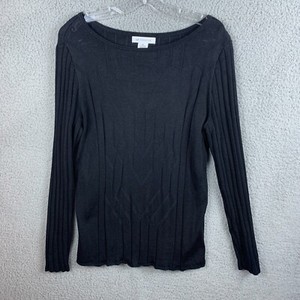 Liz Claiborne Damen Pullover Y2K Rippstrick Tunika Schwarz Gr. XL