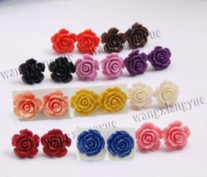 Großhandel 11 Farben 15 mm Meereskoralle geschnitzte Blume Schmuck Ohrringe Silber Ohrstecker AAA CHF 3,10