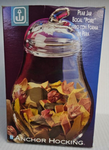 Anchor Hocking Clear Glass Pear Shaped Lidded Jar 60 Oz 9" Vintage in Box USA*