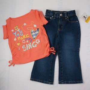 GIRLS TODDLER 2 PIECE SET WITH CORAL SHIRT AND DENIM JEANS 2T NWT
