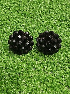 Vintage Black Glass Cluster Flower Screw Back Earrings