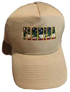 Vintage Florida hellbraun Trucker Snapback Mütze Kappe Netz Otto 80er tropisch bestickt