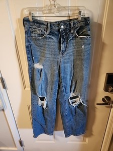 Old Navy Gr. 8 High Rise OG lose Damenjeans 5 Taschen blau abgenutzte Löcher
