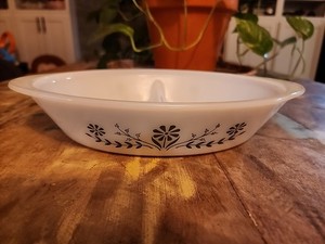 Glasbake geteilt Auflaufform, 12", Crazy Daisy #J2352 grün, Vintage 80er