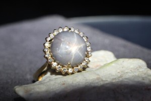 ATEMBERAUBENDER NATÜRLICHER CEYLON STERN SAPHIR RING MIT DIAMANTEN IN 18K GOLD