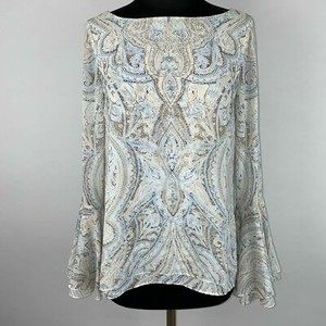 White House Black Market Damen 0 Muster Glockenärmel Bluse Schlüsselloch Schlitz hinten OT