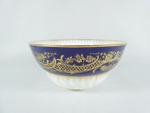 Antique 1900 Wedgwood Bone China Large Slop Sugar Bowl Cobalt Gold Blue Y6090