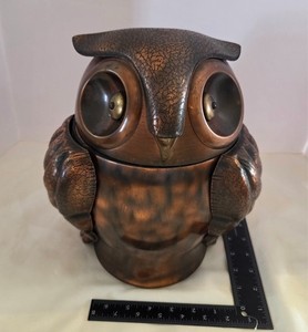Vintage MCM Mid Century Eule Kupfer Metall Bargeschirr Dekanter Set Made in Japan RAR