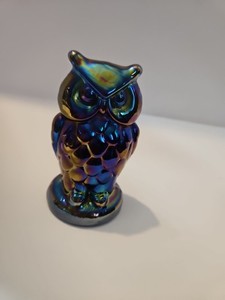 MOSSER Glass 3.75" Owl Figurine Paperweight Carnival Iridescent