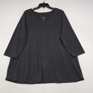 Susan Graver Shirt Damen Plus 2X schwarz 3/4 Arm Oberteil Bluse Weekend Stretch