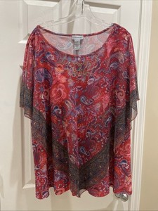 Worthington Damen hübsches schwarz lila pink Kurzarm Plissee Ausschnitt Top Gr. PXL CHF 16,58CHF 20,73