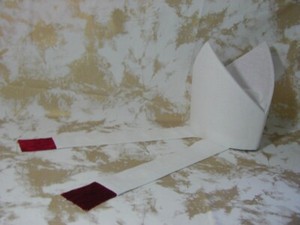 BISHOPS' NEW MITRES from WEST STAR ORIGINALS (WSO). Zucchetti are offered in several colors. Mitres are made to fit each customer's head circumference and can be further customized in several ways: height, type of sides, color of fabric, fringe, crosses & cording. Frequent WSO Original designs listed. Will help you design "Your Mitre Your Way".