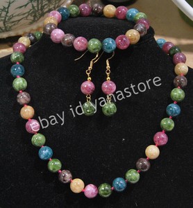 Natürliche Mehrfarbig Turmalin Rund Edelstein Perlen Halskette Armband Ohrring