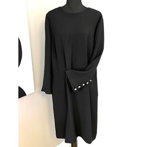Talbots schwarz Etuikleid Midikleid Langarm Cocktail Abend Größe 16 Krepp 40”L