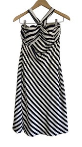 Banana Republic 100 % Seide Damengröße 10 gestreift Neckholder Midi Kleid neu mit Etikett $ 150 CHF 31,79