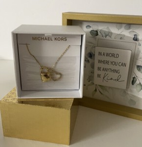 🐼💦 MICHAEL KORS 🐼💦 MKJX7398710 Gold Doppel Herz Schloss Charm Halskette 🐼 D52