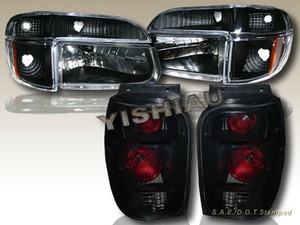 01-05 FORD EXPLORER SPORT TRAC HEADLIGHTS BLK+ CORNER + BLACK TAIL LIGHTS 02 03