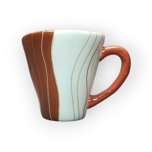 Kaffeebecher Pier 1 Imports Canyon Stripe 16oz Teetasse handbemalt orange & weiß