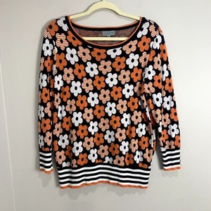 Joseph Allen Damen Pullover Orange Retro Blumen Größe M Navy Weiß 70er