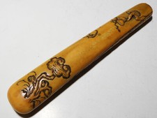 Pipecase Sagemono Meiji japanisches antikes Holz geschnitztes geometrisches Muster braun