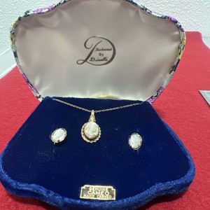 Vintage Art Deco Set geschnitzte Kamee Halskette Clip-On Ohrringe gemarkt inkl. 1/20 12k GF